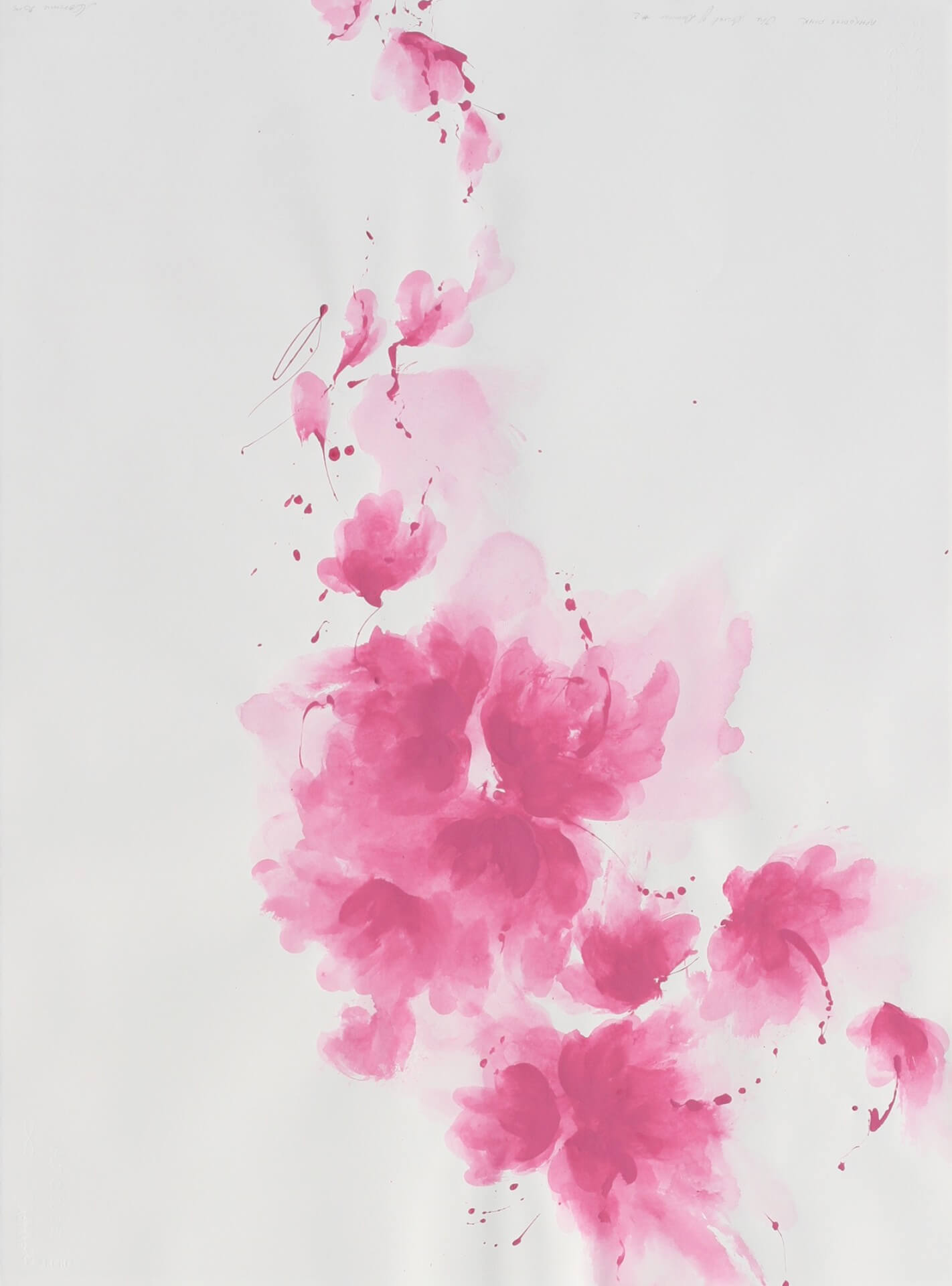 Inspired by those such as travelling poets, who have ever climbed a mountain and spoken their words into the wind, the paintings have become a more personal exploration for the artist. The line becomes an abstracted code to experience her ongoing interest in the dichotomy of form and formlessness, of space and the void.