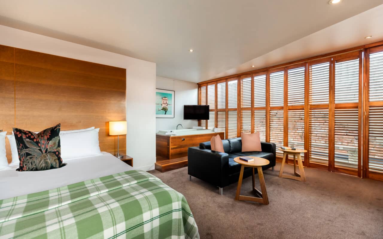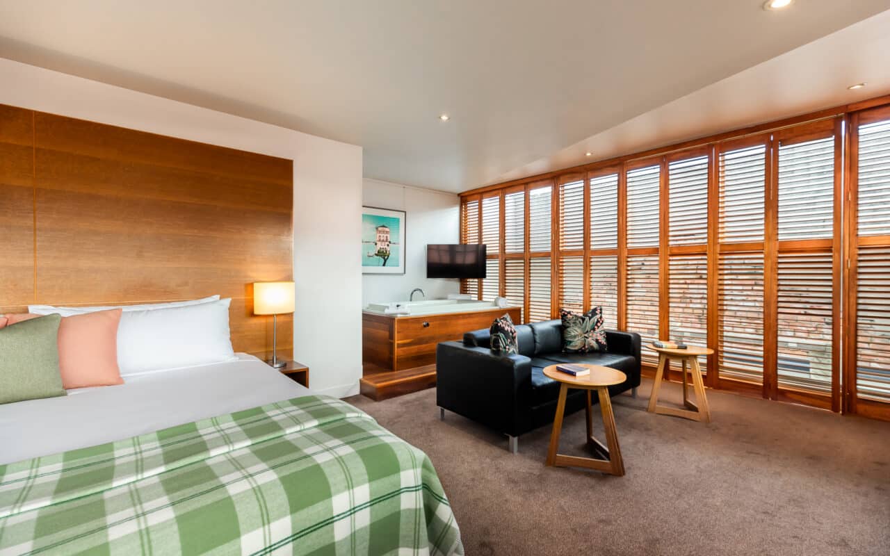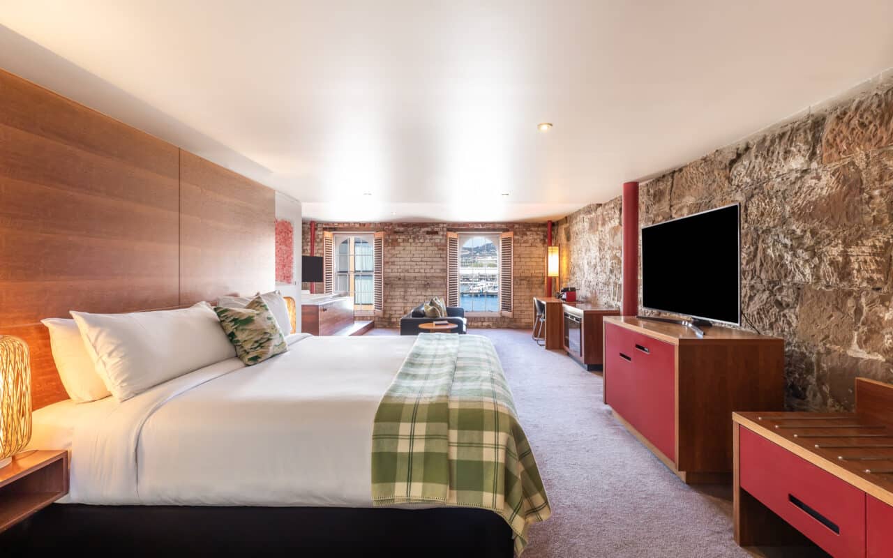 Located within the original Henry Jones Ice House, the Oriental Suites have a distinct sense of stillness. Traditional Japanese design elements have been subtly weaved into soft furnishings and fabrics. There’s a harmony between the Asian accents and earthy elements of each suite’s original architecture. Views feature Hobart’s harbour or the forested slopes of Mount Wellington.