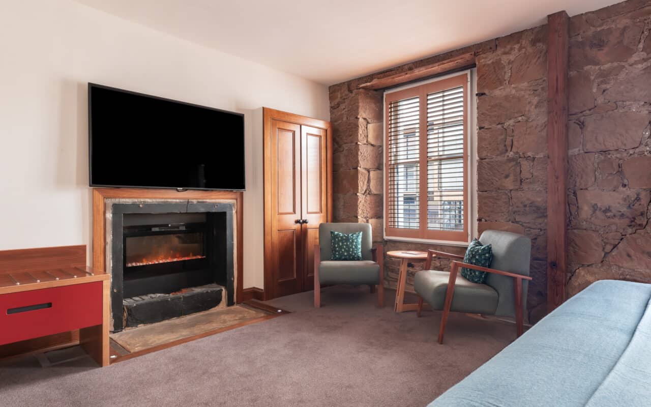 Use of stairs is required to access these rooms. If this could cause you difficulty, please call our reservations team on +61 3 6210 7700 who will advise you on the most accessible room to suit you. We apologise for any inconvenience or disappointment this causes and hope you can understand that this room’s accessibility is restricted by our endeavour to preserve Tasmanian history and the original structure of this historic building.